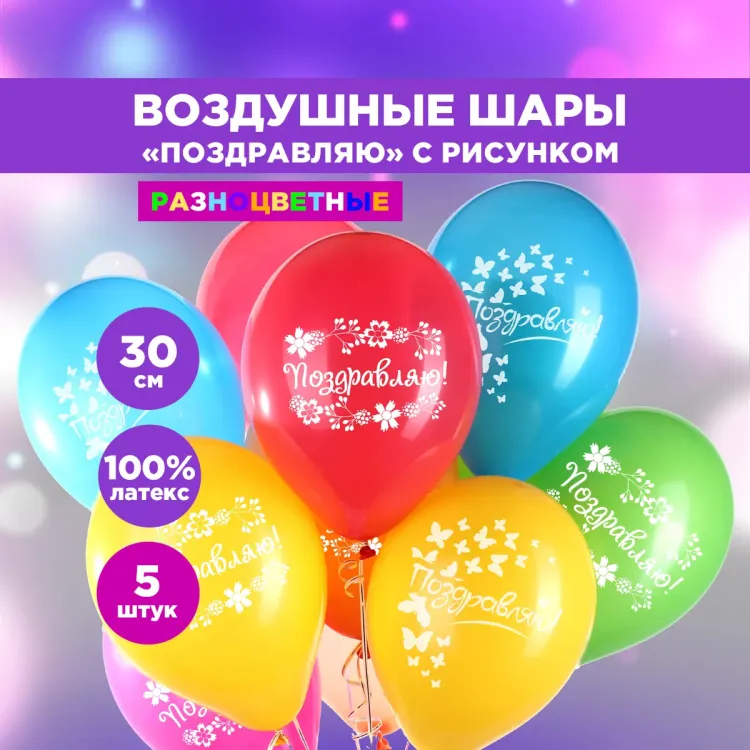 "PATERRA" Набор воздушных шаров "Поздравляю!" 30см 5шт.
