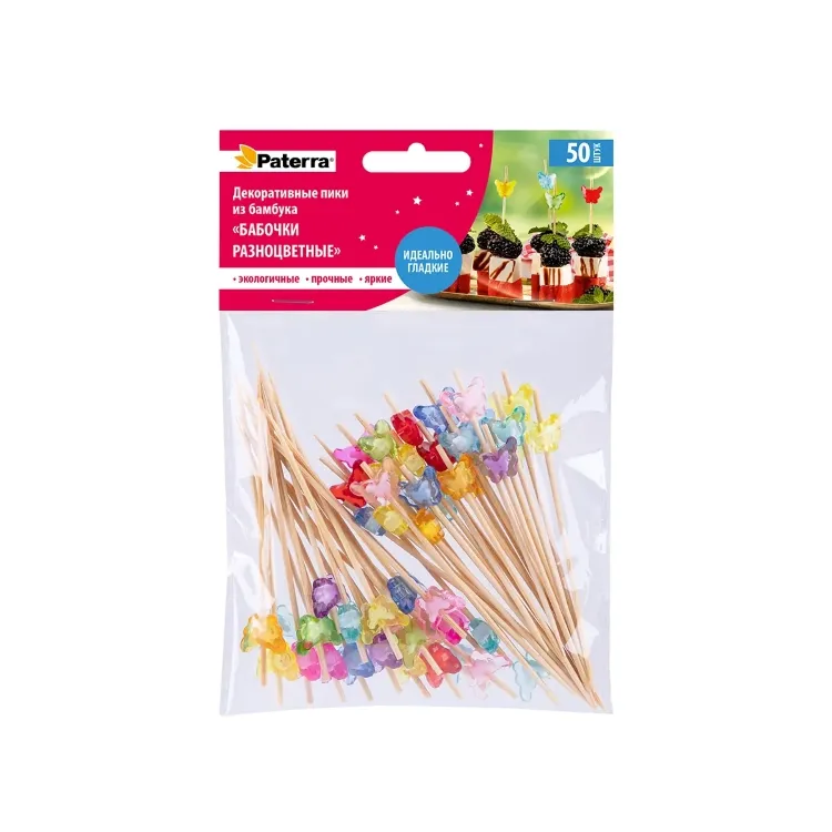 "PATERRA" Шпажки для канапе "Бабочки разноцветные" бамбук, 50шт. 9см