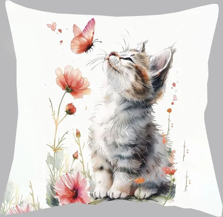 Подушка декоративная "Котенок и бабочка" 35х35см