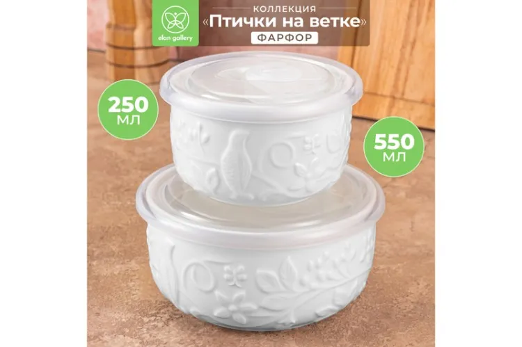 "Птички на ветке" Набор салатников с крышками 2шт. 550мл; 250мл.