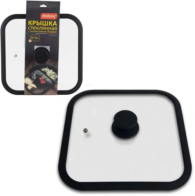"QUADRATO" Крышка стекл. 26х26см с силикон. ободком, цв.черный