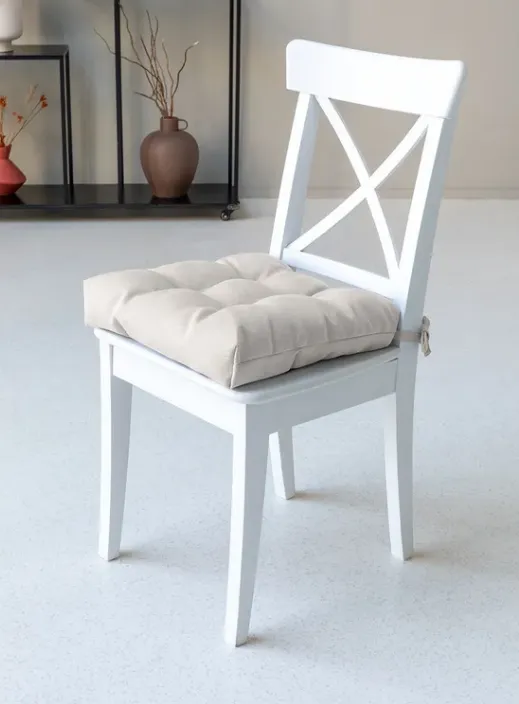 "Рогожка" Подушка на стул 40х40х8см, с тафтингом, цв.экрю