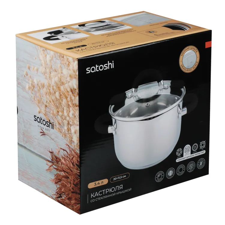 "SATOSHI" Арбон" Кастрюля 3,4л 20см с индукционным дном