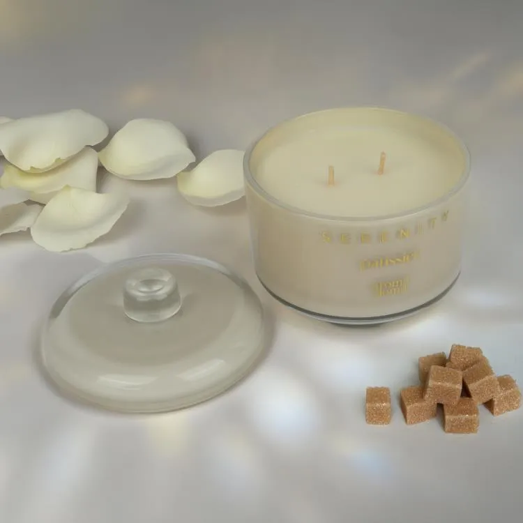 Свеча из соевого воска станет отличным акцентом в вашем доме, создавая атмосферу уюта и романтики. Она оснащена двумя фитилями, которые обеспечивают равномерное горение и полное выгорание, не оставляя остатка. Свеча помещена в элегантный стеклянный стакан с крышкой на ножке, который также служит элементом декора.