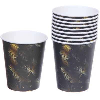 "Хвойная веточка" Набор бумажных стаканов 200мл 10шт. цв.черный