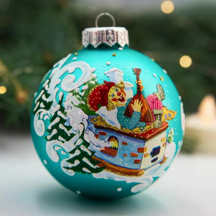 Шар новогодний "Емеля на печи" 8см в п.у.