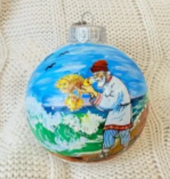 Шар новогодний "Старик с золотой рыбкой" 8см, в п.у.