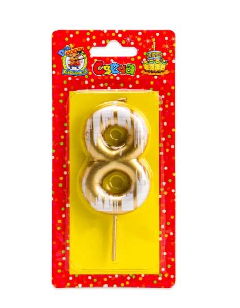 "Шебби шик" Свечи для торта "Цифра 8" цв.золото