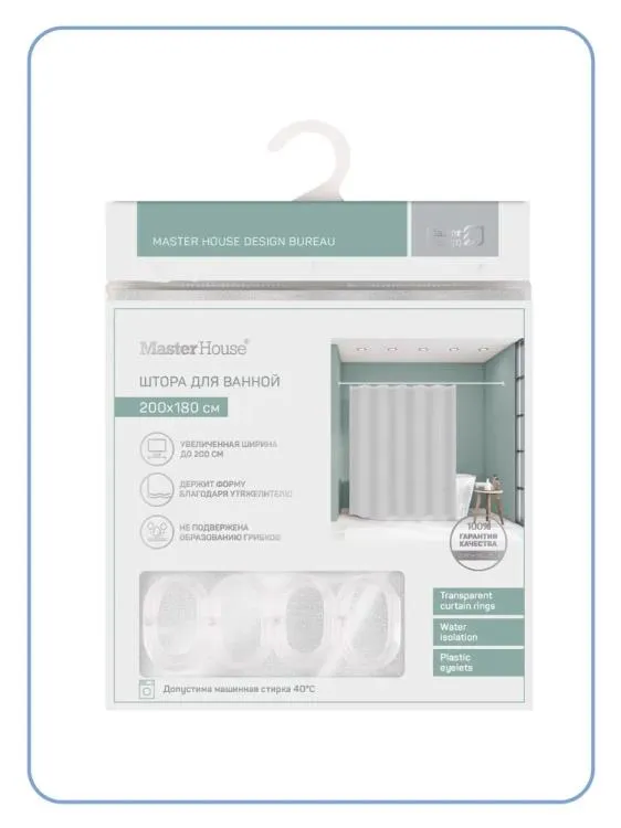 Штора для ванной "Кардинал" 180х200см, цв.белый