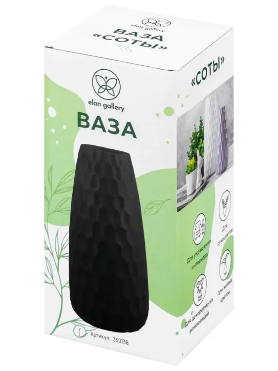 "Соты" Ваза 28см, цв.черный