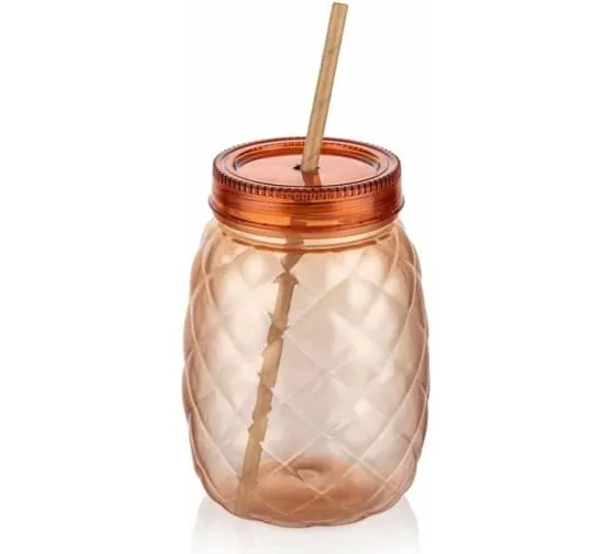 Стакан "Pineapple" с крышкой и трубочкой 600мл, цв.коричневый