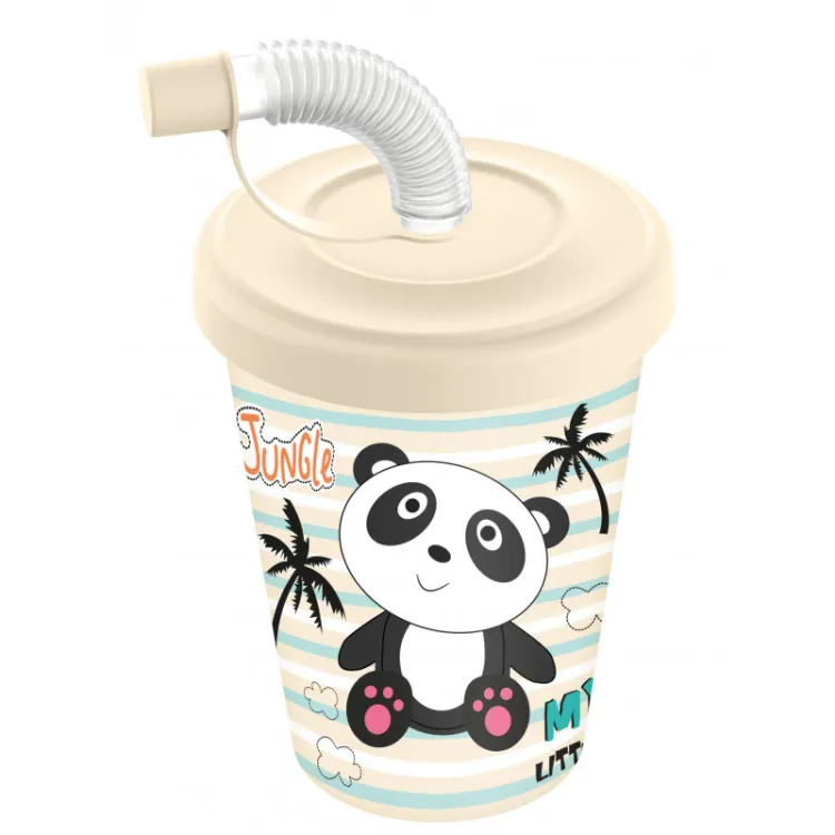 Стакан с крышкой и трубочкой "Панда" 280мл