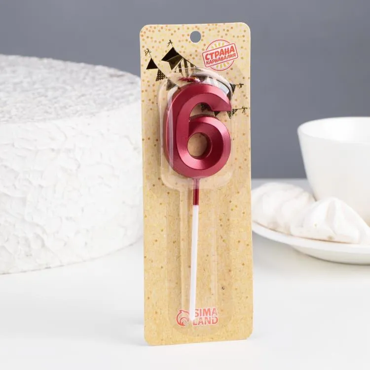 Свечи для торта "Цифра 6", цв.красный