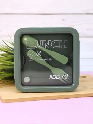 Ланч-бокс "Square" 1,1л со столовыми приборами, 17х7х7см, цв.т.зеленый