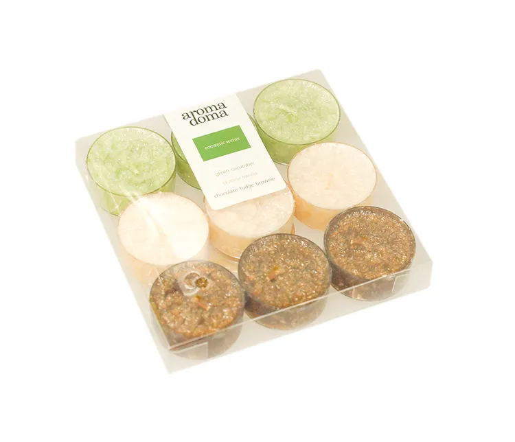 "Tealight" Набор свечей-таблеток (9шт) Жасмин-ваниль,огурец, брауни 10х10х2,5см