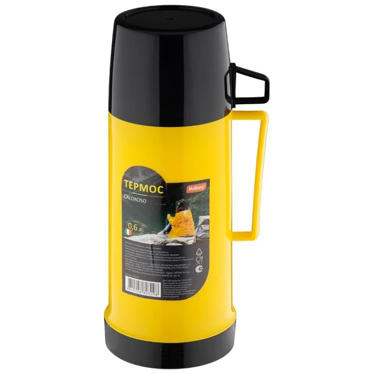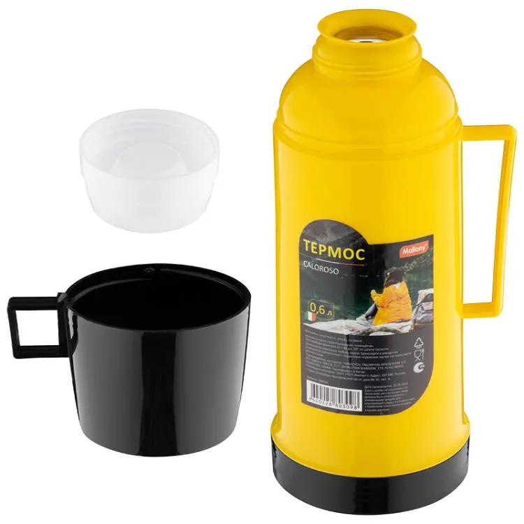 Термос со стеклянной колбой "CALOROSO" 0,6л, цв.желтый
