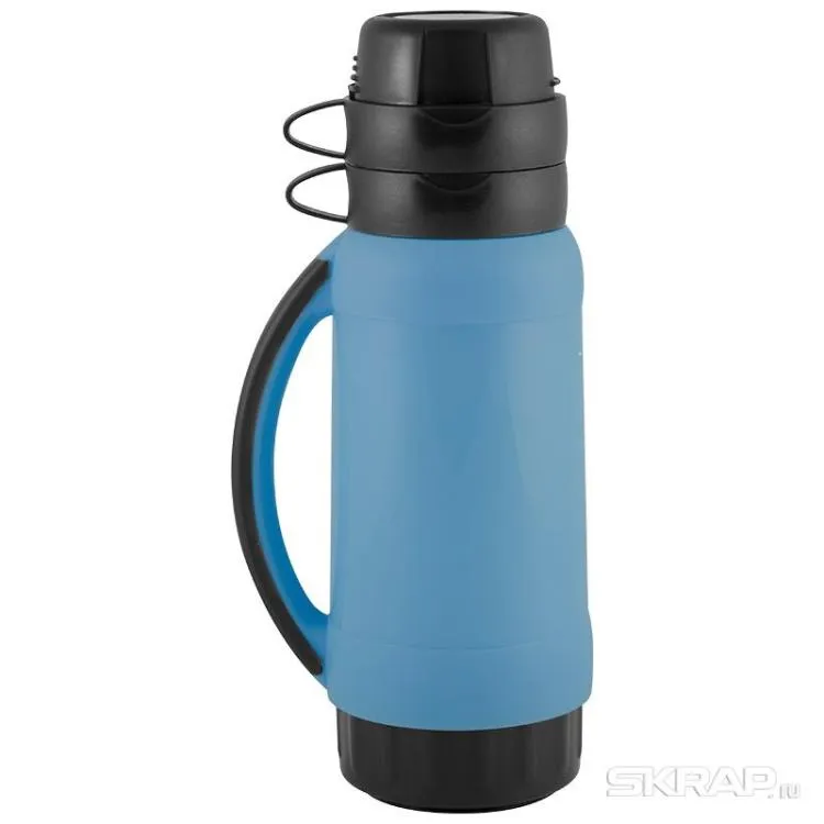 Термос со стеклянной колбой "PRATICO" 1л, цв.голубой