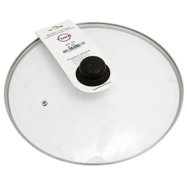 "Tima" Крышка стекл. 32см с метал. ободком, низкая