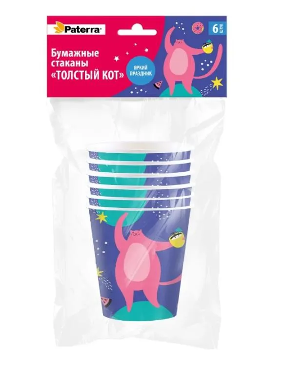 "Толстый кот" Набор бум.стаканов 6шт. 250мл