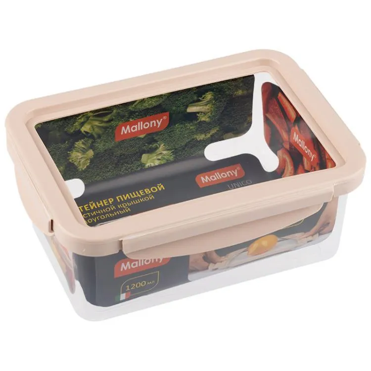 "UNICO" Контейнер с эластичной крышкой 1,2л прямоуг. 19х13,5х7,5см цв.бежевый