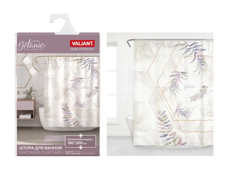 "VALIANT" BOTANIC LILAC MOSAIC Штора для ванной 180х200см