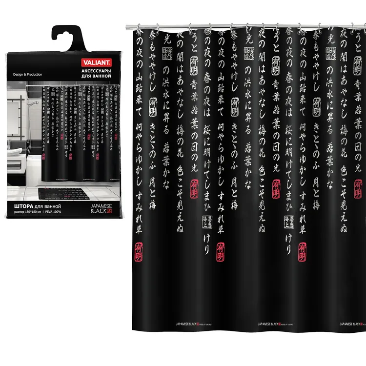 "VALIANT" JAPANESE BLACK Штора для ванной 180х180см
