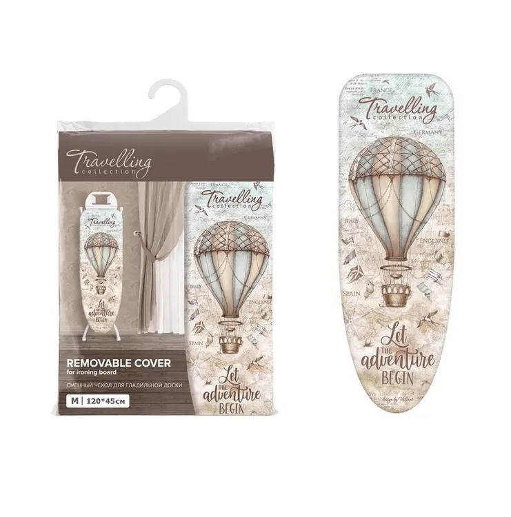 Чехол выполнен из 100% хлопка с подкладкой из плотного искусственного войлока толщиной 3 мм. Подходит для гладильных досок размером от 126*38 см до 136*46 см.