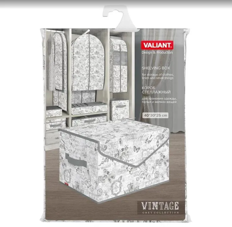 "VALIANT" VINTAGE GREY Короб стеллажный с крышкой на магните 30х40х25см