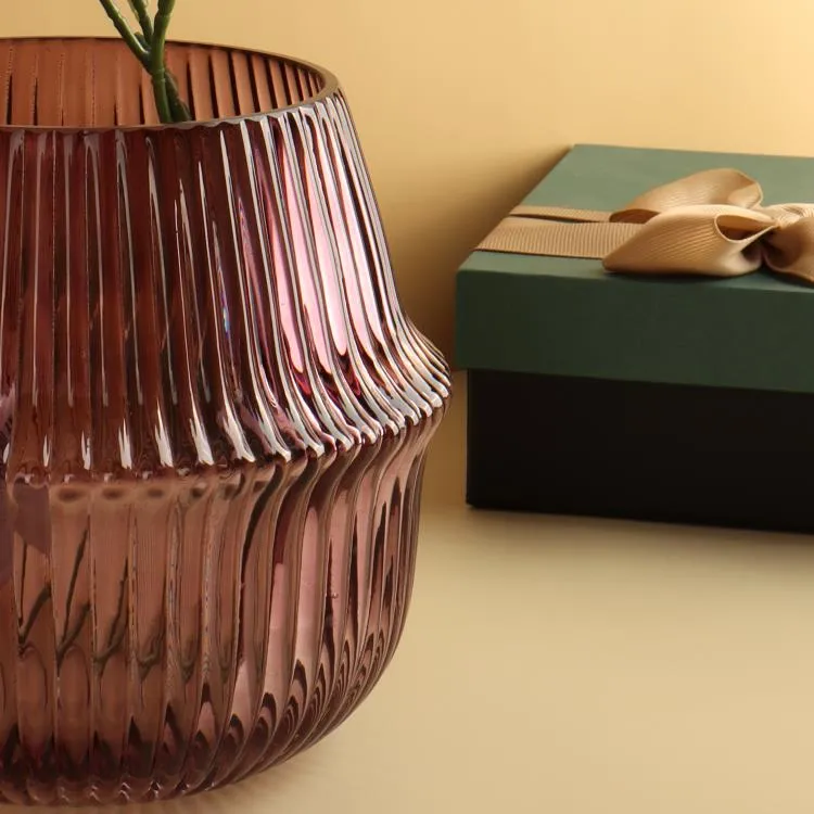 Игра света на бордовых стенках создает восточную атмосферу, добавляя глубину и потаенность в композицию вашего пространства. В качестве подарка такая стеклянная ваза будет символизировать изысканность и оригинальность вашего выбора, оставляя незабываемые впечатления.