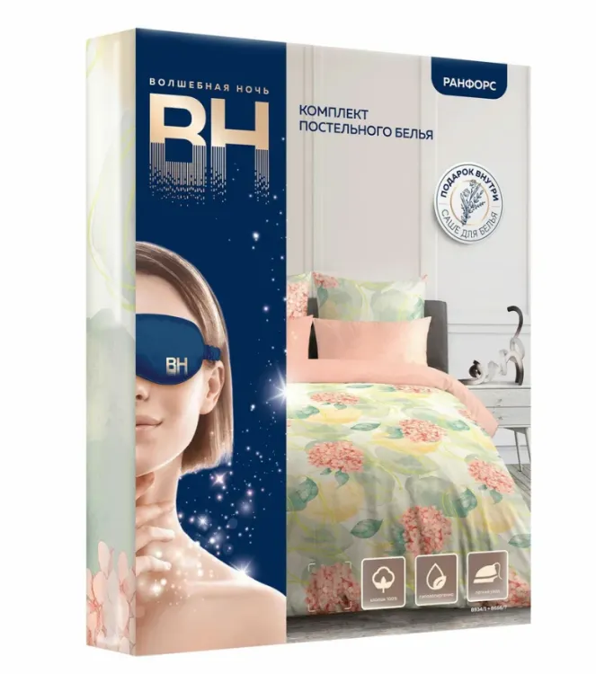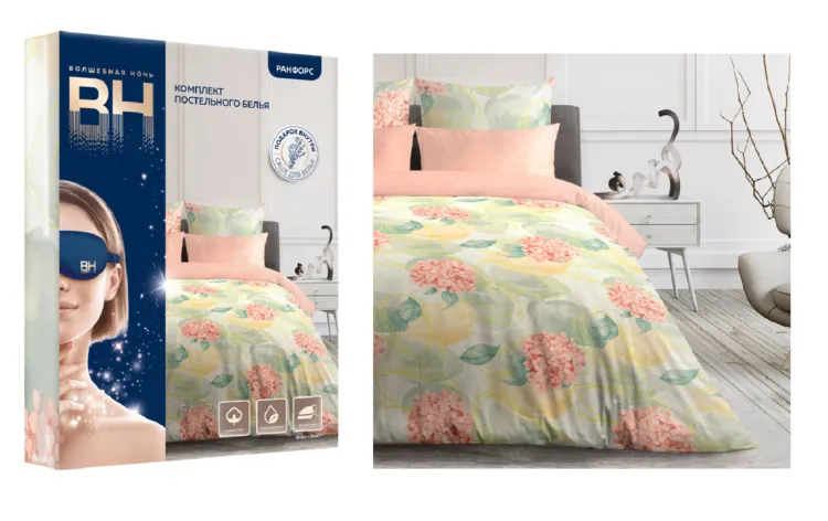 Материал: ранфорс 1 простыня 200/220 см, 1 пододеяльник 180/215 см, 2 наволочки 70/70 см