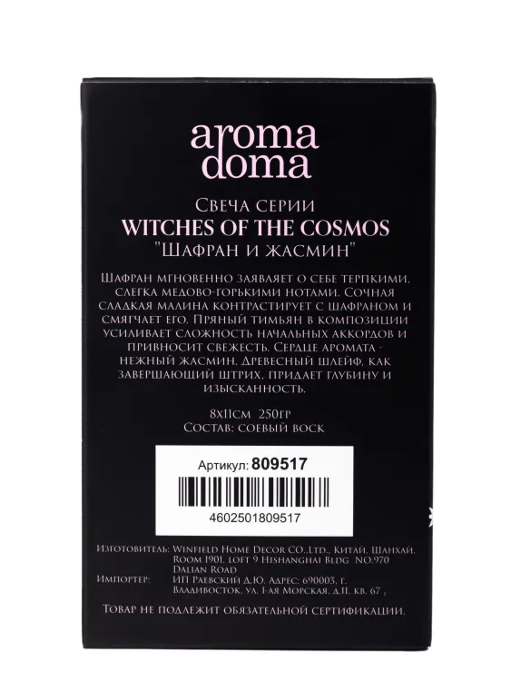 "Witches of the cosmos" Свеча "Шафран и жасмин" 2 фитиля 8x11см