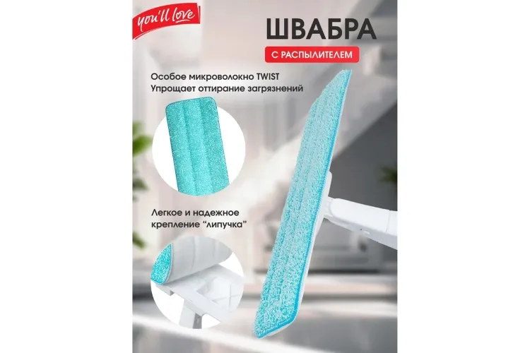 "You'll love" Швабра с распылителем и насадкой из микрофибры 125х35,5х12см 77164