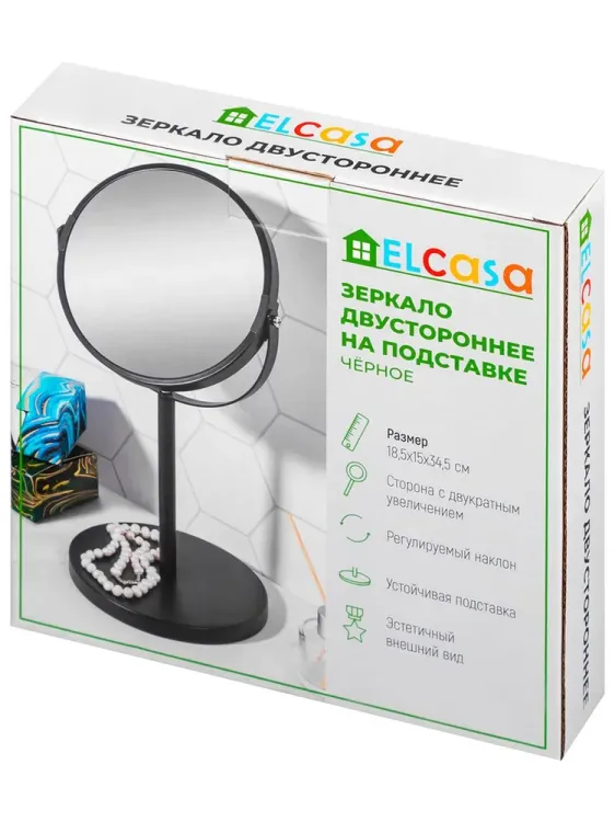 Зеркало настольное двустороннее "Черное" 18,5х15х34,5см